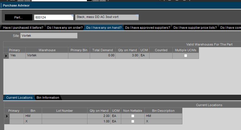 Are the materials on hand in the site / warehouse on the JobMtl?