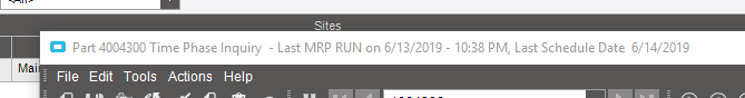 on the top of the form in Time Phase you can see when the last MRP and scheduled run for a part was. Could it be MRP hasn’t ran for a while for this specific part?