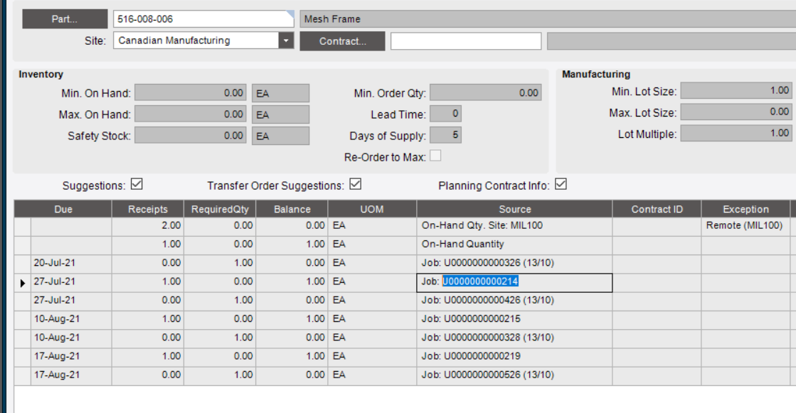 I’ve run MRP since the earlier screen shots so the job number’s have changed but the part looks good for the new job numbers