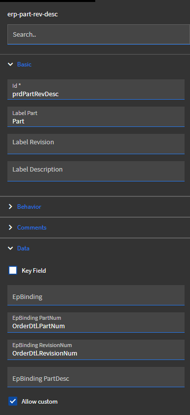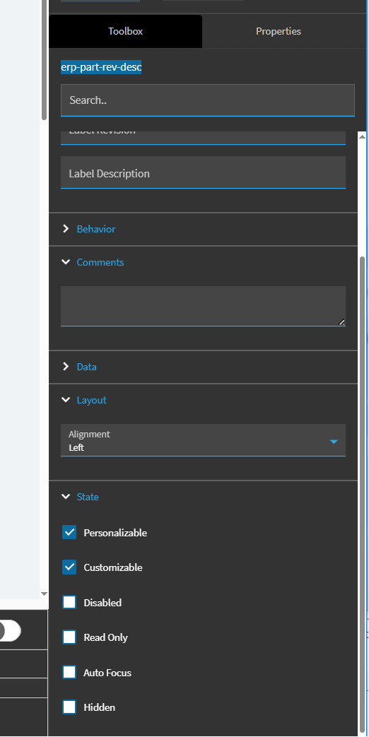 The part description text box is too narrow, clipping information from the part description (which is visible in classic). App Studio doesn’t provide any way to increase the width of the erp-part-rev-desc control. Any suggestions on how to increase this? We’re supposed to go full browser in the next week. Eek.